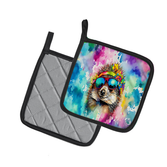 Hippie Animal Hedgehog Pair of Pot Holders