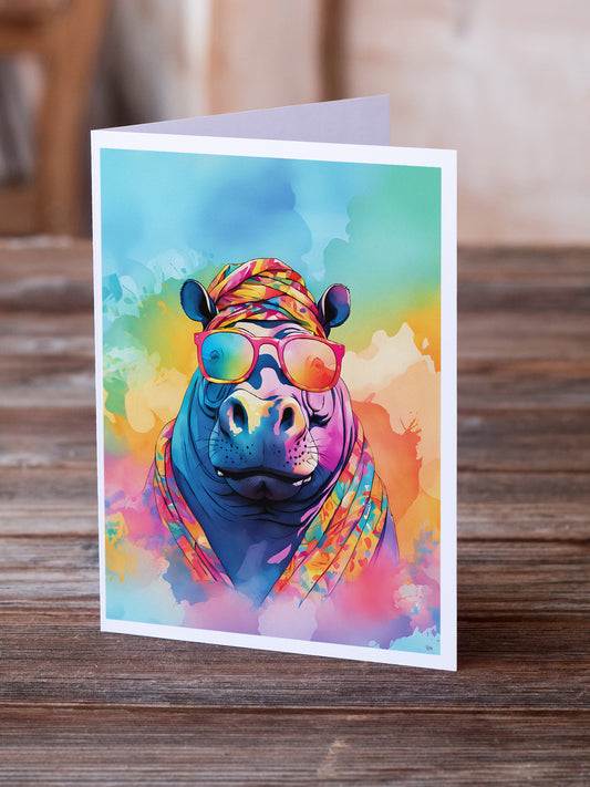 Hippie Animal Hippopotamus Greeting Cards Pack of 8