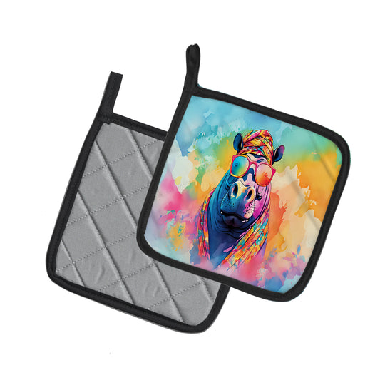 Hippie Animal Hippopotamus Pair of Pot Holders
