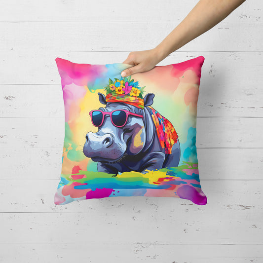Hippie Animal Hippopotamus Throw Pillow