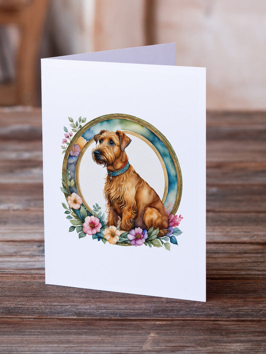 Irish Terrier and Flowers Greeting Cards and Envelopes Pack of 8