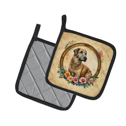Irish Wolfhound and Flowers Pair of Pot Holders