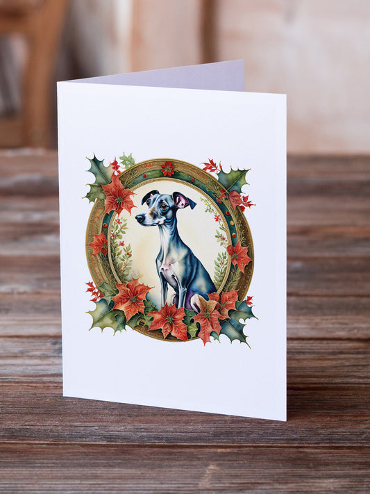 Italian Greyhound Christmas Flowers Greeting Cards Pack of 8