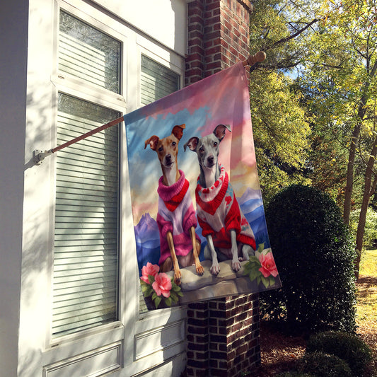 Italian Greyhound Two Hearts House Flag