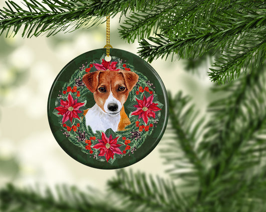 Jack Russell Terrier #2 Poinsetta Wreath Ceramic Ornament