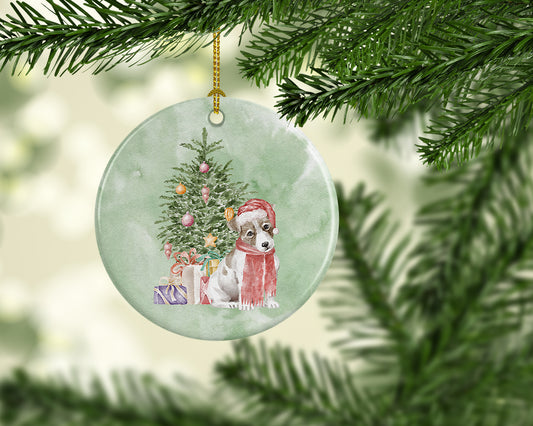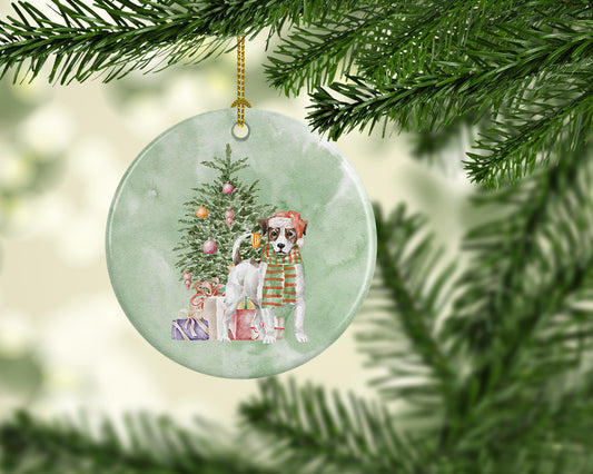 Jack Russell Terrier Smooth Puppy Christmas Presents and Tree Ceramic Ornament