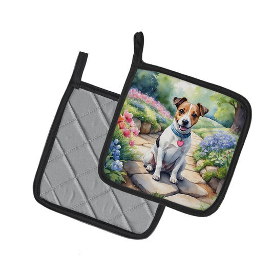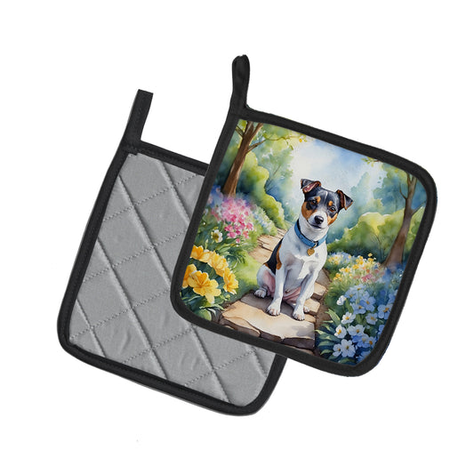 Jack Russell Terrier Spring Path Pair of Pot Holders