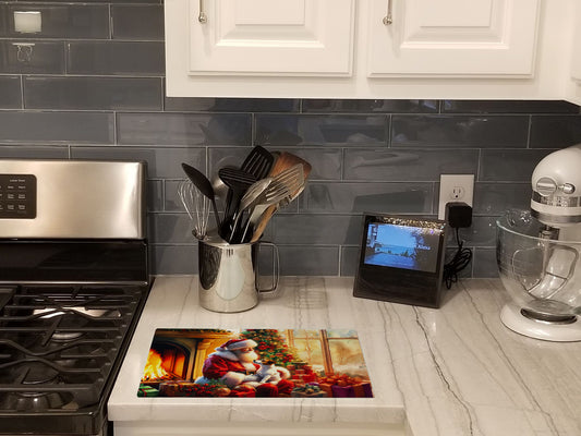 Jack Russell Terrier and Santa Claus Glass Cutting Board