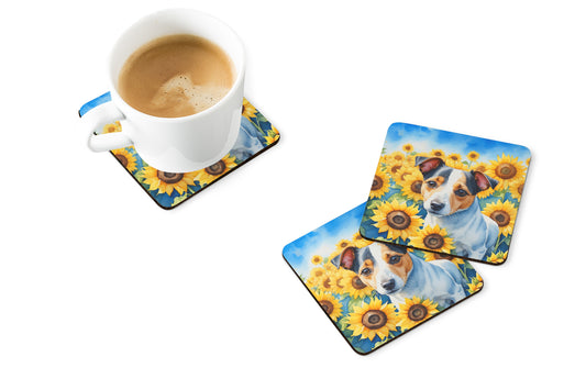 Jack Russell Terrier in Sunflowers Foam Coasters