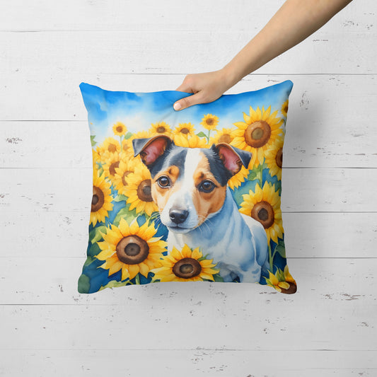 Jack Russell Terrier in Sunflowers Throw Pillow