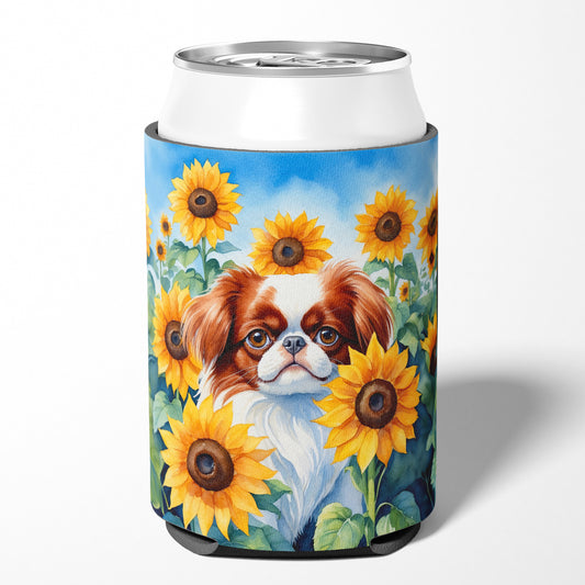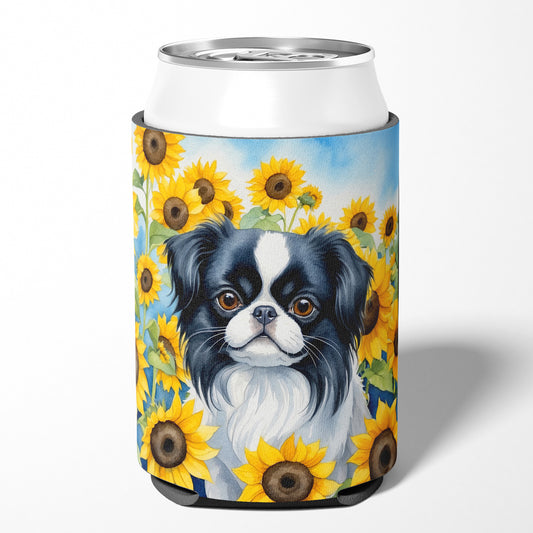Japanese Chin in Sunflowers Can or Bottle Hugger
