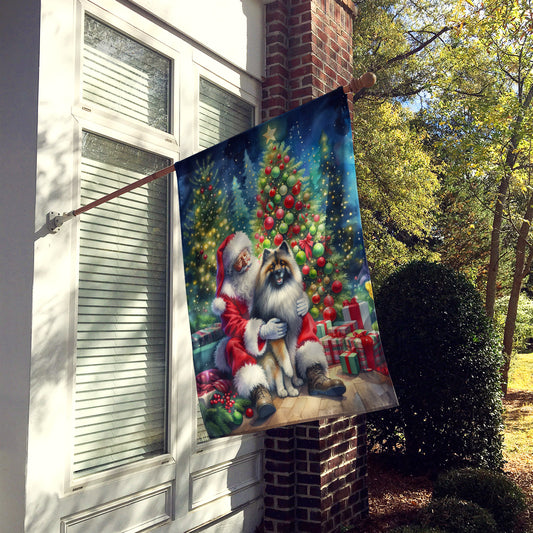 Keeshond and Santa Claus House Flag