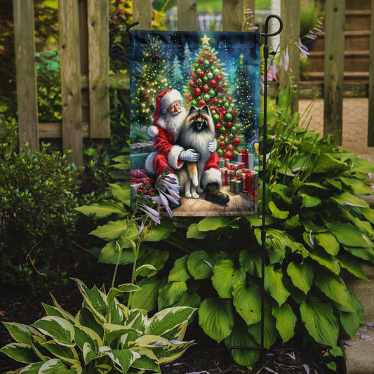 Keeshond and Santa Claus Garden Flag