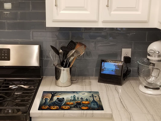 Keeshond Spooky Halloween Glass Cutting Board