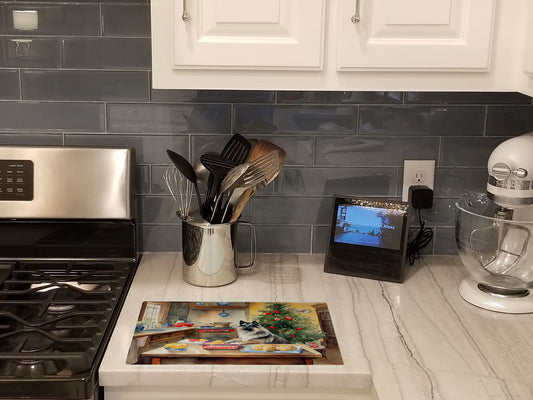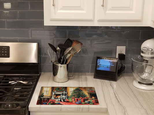 Keeshond Cozy Christmas Glass Cutting Board