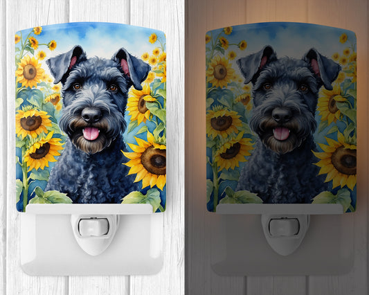Kerry Blue Terrier in Sunflowers Ceramic Night Light