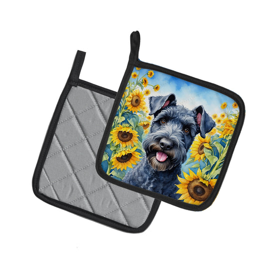 Kerry Blue Terrier in Sunflowers Pair of Pot Holders