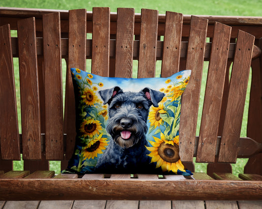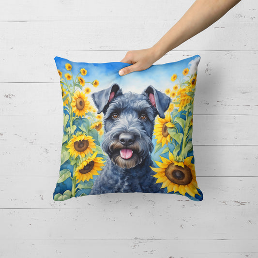Kerry Blue Terrier in Sunflowers Throw Pillow