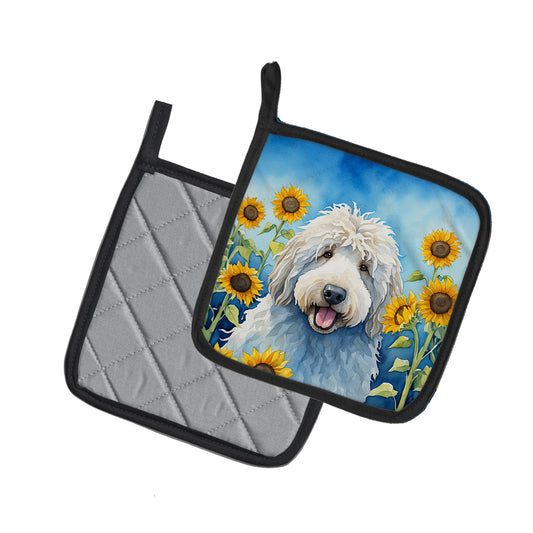 Komondor in Sunflowers Pair of Pot Holders