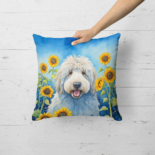 Komondor in Sunflowers Throw Pillow