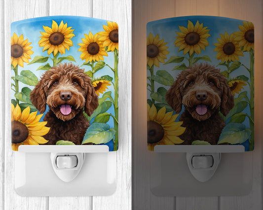 Labradoodle in Sunflowers Ceramic Night Light