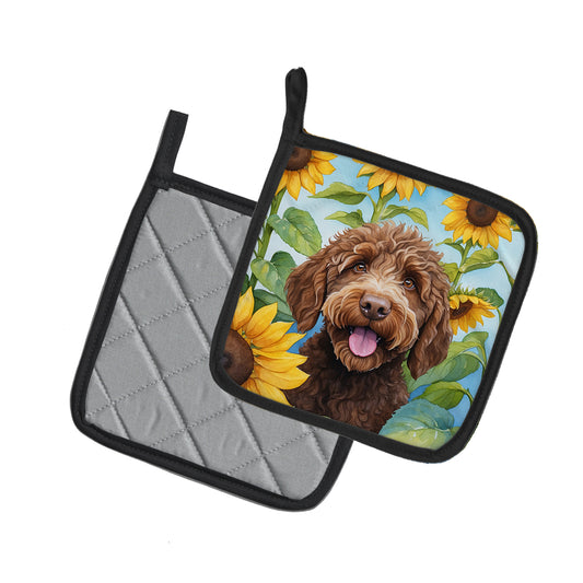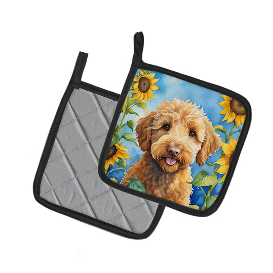 Labradoodle in Sunflowers Pair of Pot Holders