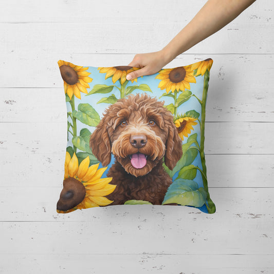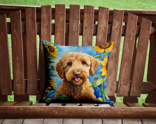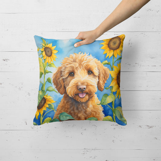 Labradoodle in Sunflowers Throw Pillow