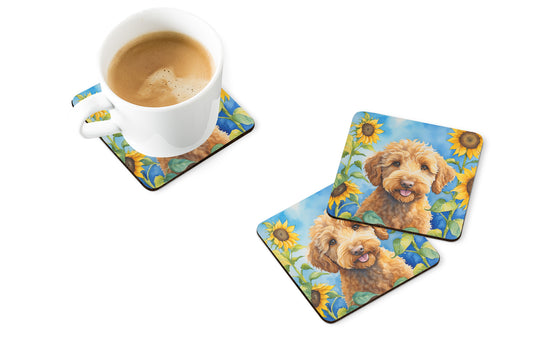 Labradoodle in Sunflowers Foam Coasters