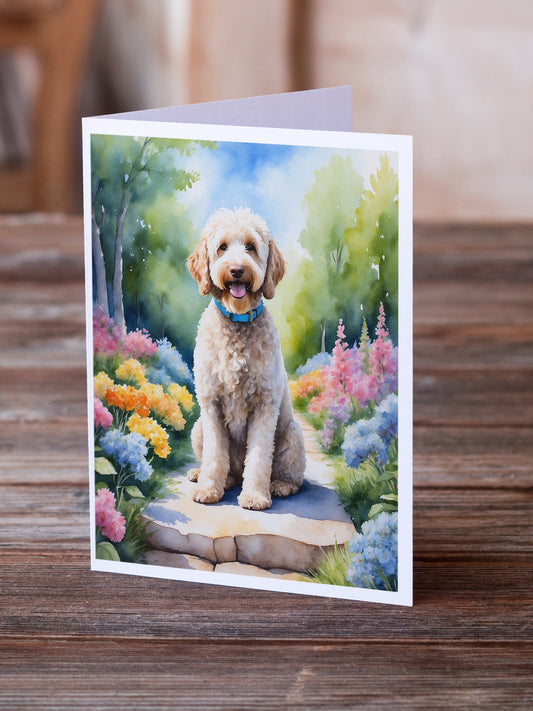 Labradoodle Spring Path Greeting Cards Pack of 8
