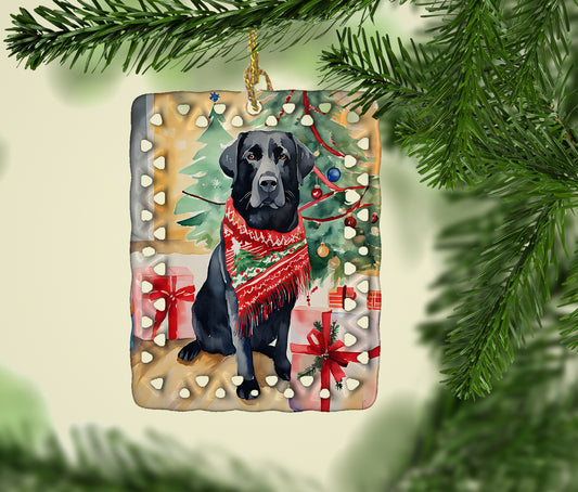 Chocolate Labrador Retriever Christmas Porcelain Ornament