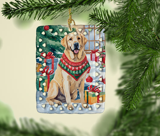 Yellow Labrador Retriever Christmas Porcelain Ornament
