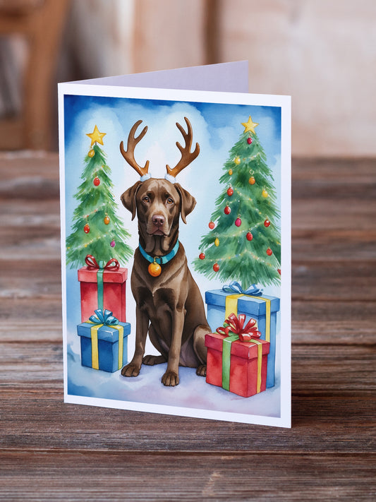 Chocolate Labrador Retriever Christmas Reindeer Greeting Cards Pack of 8