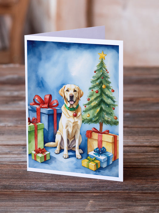 Yellow Labrador Retriever Christmas Reindeer Greeting Cards Pack of 8