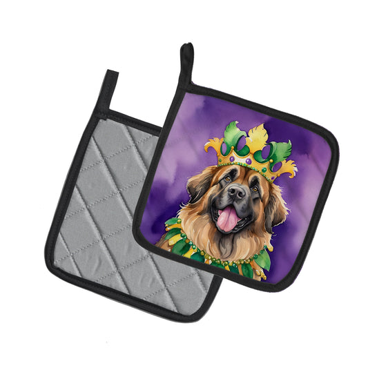 Leonberger King of Mardi Gras Pair of Pot Holders