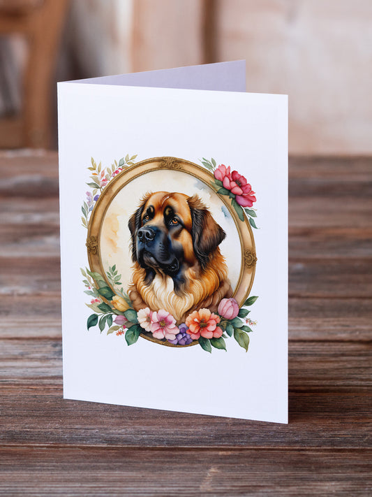 Leonberger and Flowers Greeting Cards and Envelopes Pack of 8