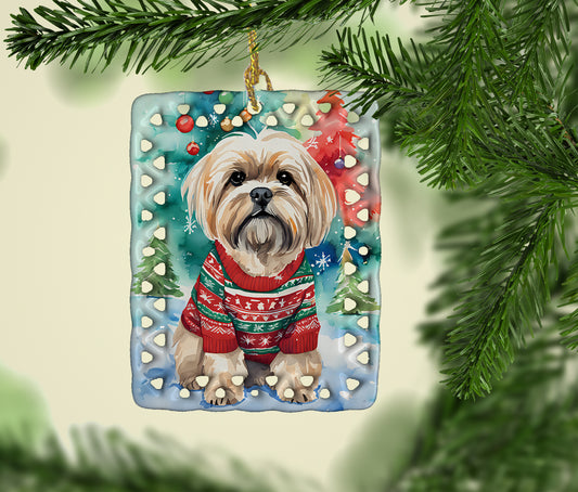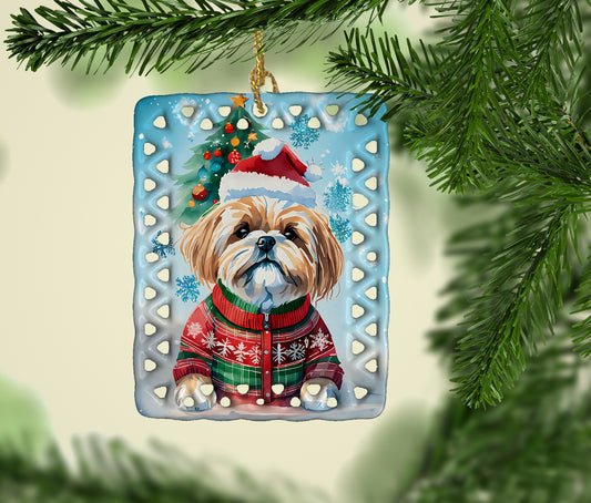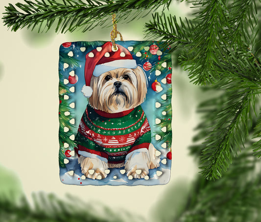 Lhasa Apso Holiday Christmas Porcelain Ornament