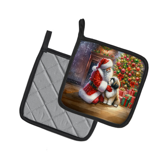 Lhasa Apso and Santa Claus Pair of Pot Holders