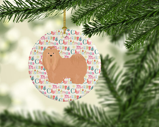 Lhasa Apso Merry Christmas Ceramic Ornament