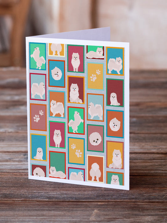 Lots of White Pomeranian Greeting Cards Pack of 8