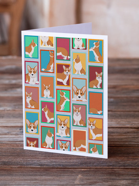Lots of Red Cardigan Corgi Greeting Cards Pack of 8