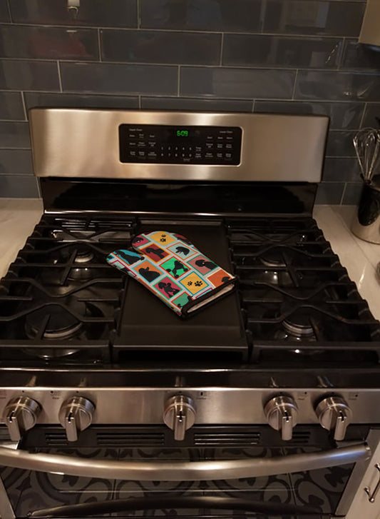 Lots of Black Standard Poodle Oven Mitt