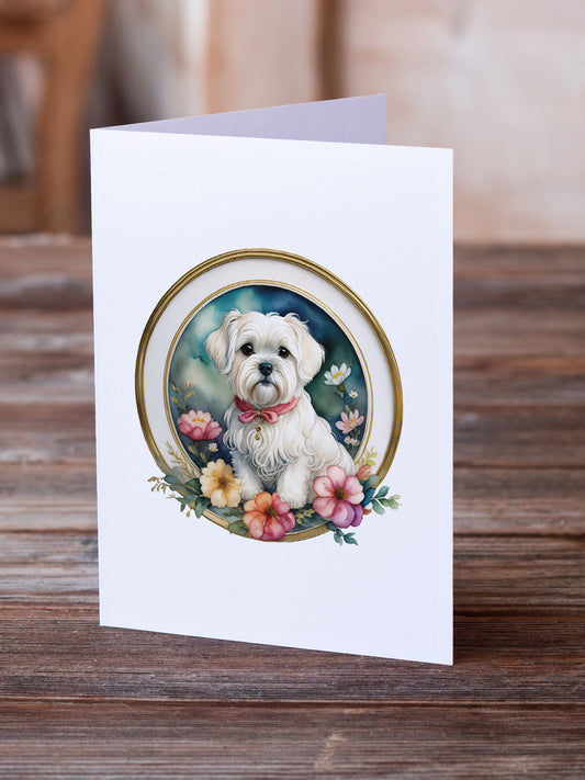 Maltese and Flowers Greeting Cards and Envelopes Pack of 8