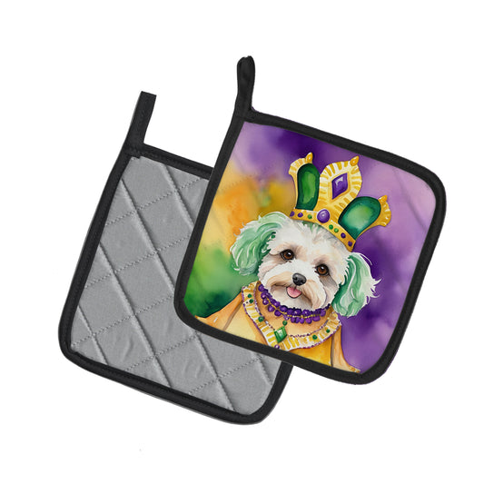 Maltipoo King of Mardi Gras Pair of Pot Holders