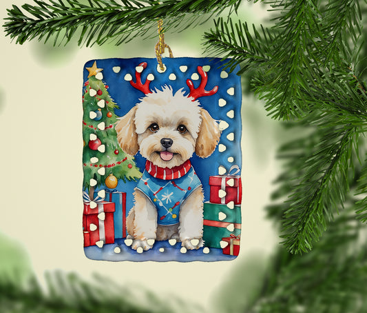 Maltipoo Christmas Reindeer Porcelain Ornament
