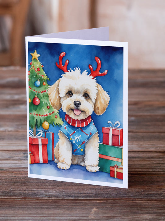 Maltipoo Christmas Reindeer Greeting Cards Pack of 8