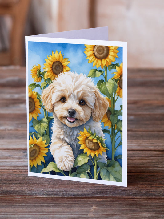 Maltipoo in Sunflowers Greeting Cards Pack of 8