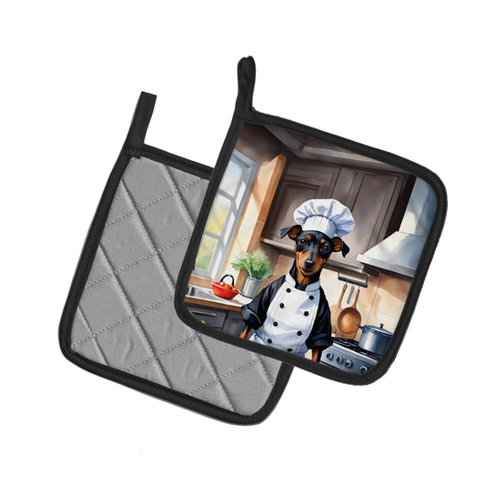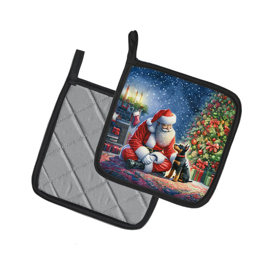 Manchester Terrier and Santa Claus Pair of Pot Holders