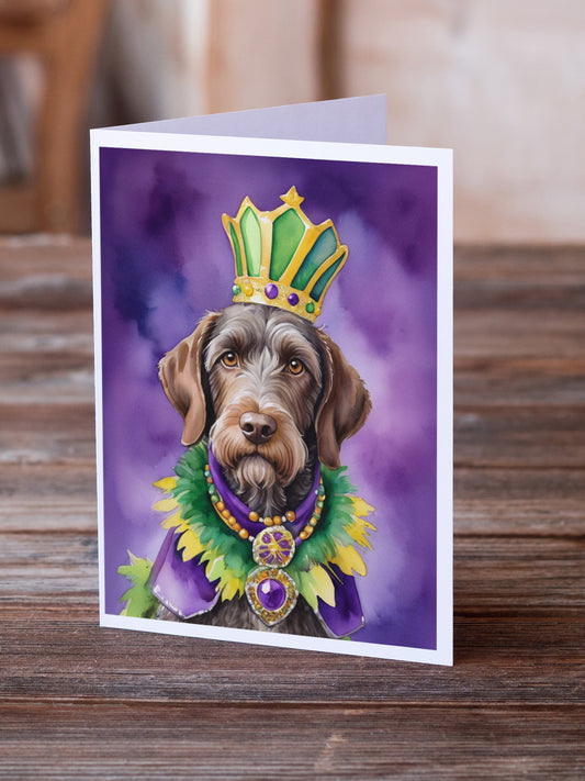 German Wirehaired Pointer King of Mardi Gras Greeting Cards Pack of 8