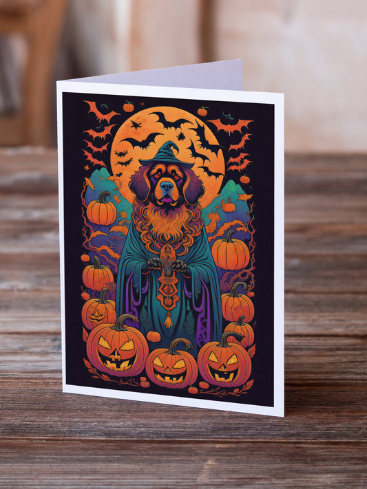 Tibetan Mastiff Witchy Halloween Greeting Cards and Envelopes Pack of 8