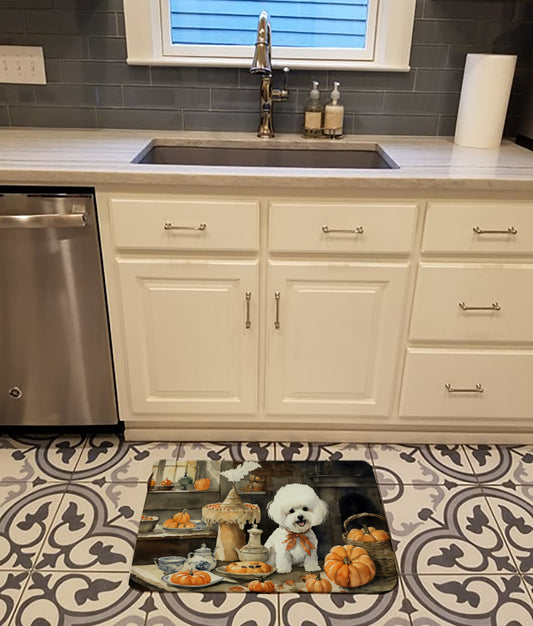 Bichon Frise Fall Kitchen Pumpkins Memory Foam Kitchen Mat